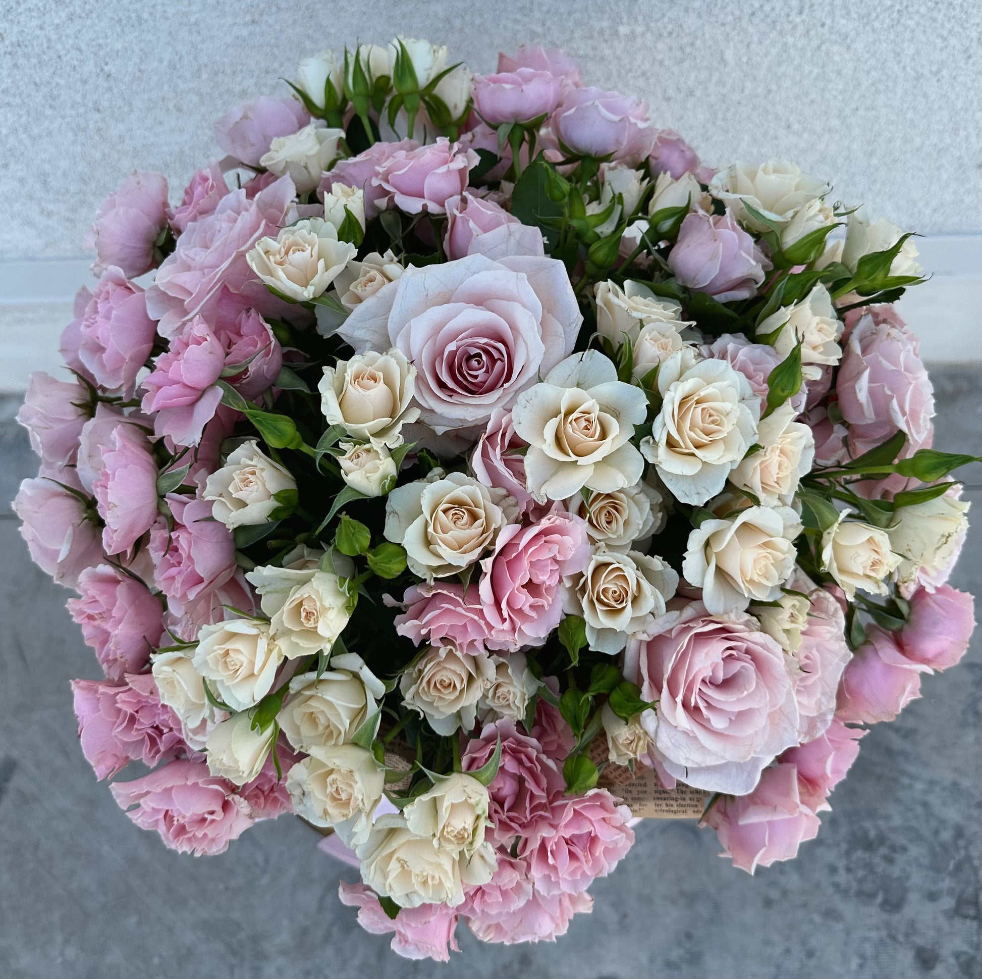 Add a touch of elegance to any occasion with our beautiful bouquet of pink roses, complemented by two types of bush roses in soft pink and pure white, arranged in a charming basket. This exquisite floral arrangement is available in three sizes, offering options for every need, whether you're looking for a delicate gesture or a grand statement. Starting at $165, this bouquet is perfect for birthdays, anniversaries, or simply as a thoughtful gift for someone special. Freshly arranged and beautifully presented, this basket of roses makes an unforgettable impression with its timeless beauty.