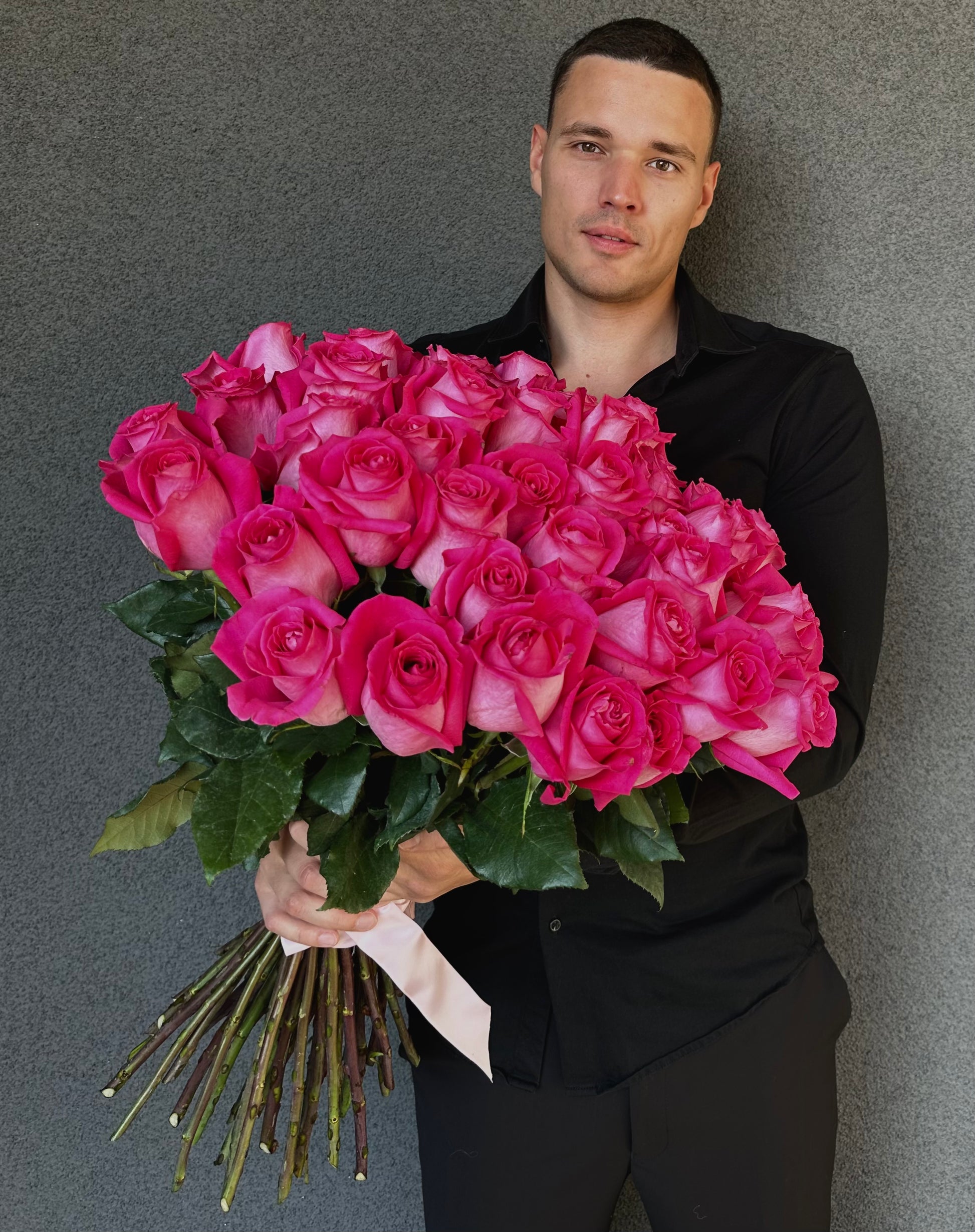 Sizes: S - 25 roses, M - 50 roses, L - 100 roses, Custom - as you desire. Prices vary by color and stem length.