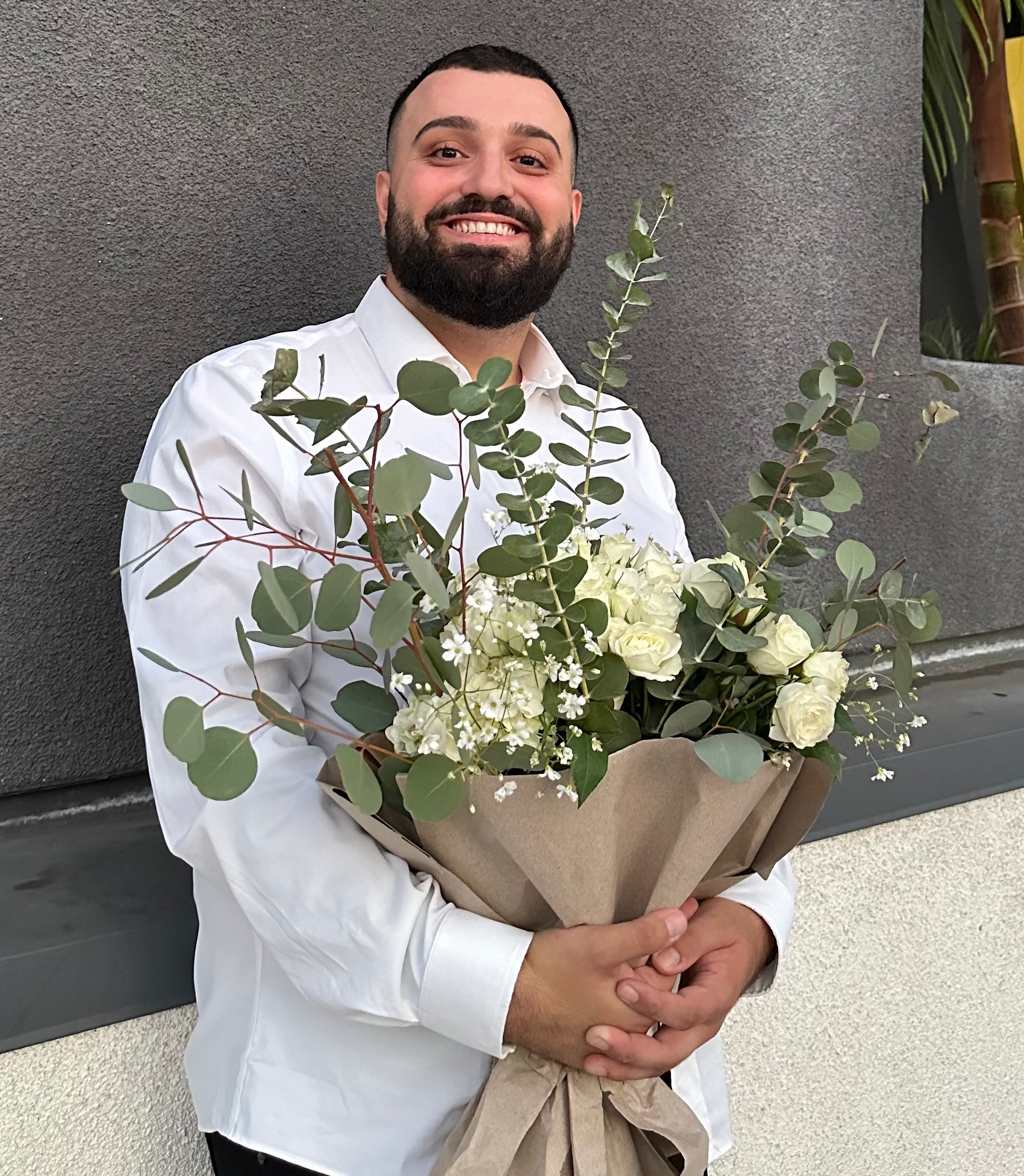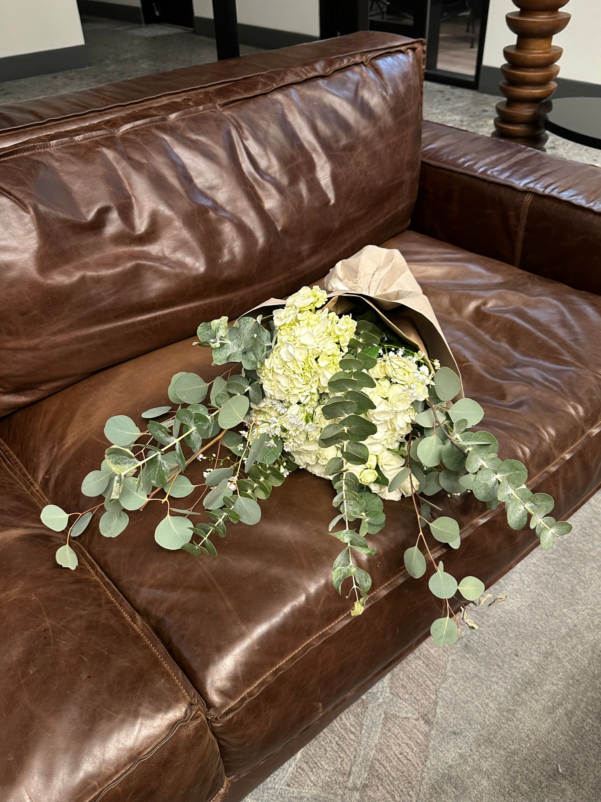 Our elegant bouquet combines the timeless beauty of white bush roses with the lush charm of white hydrangea and the subtle greenery of eucalyptus. This classic and fresh arrangement is perfect for weddings, anniversaries, or any special moment where a touch of elegance is needed. Available in three sizes and starting at $110, this bouquet is carefully arranged to create a lasting impression. Delivered fresh to your door, it’s a thoughtful and sophisticated gift that balances beauty with natural simplicity.